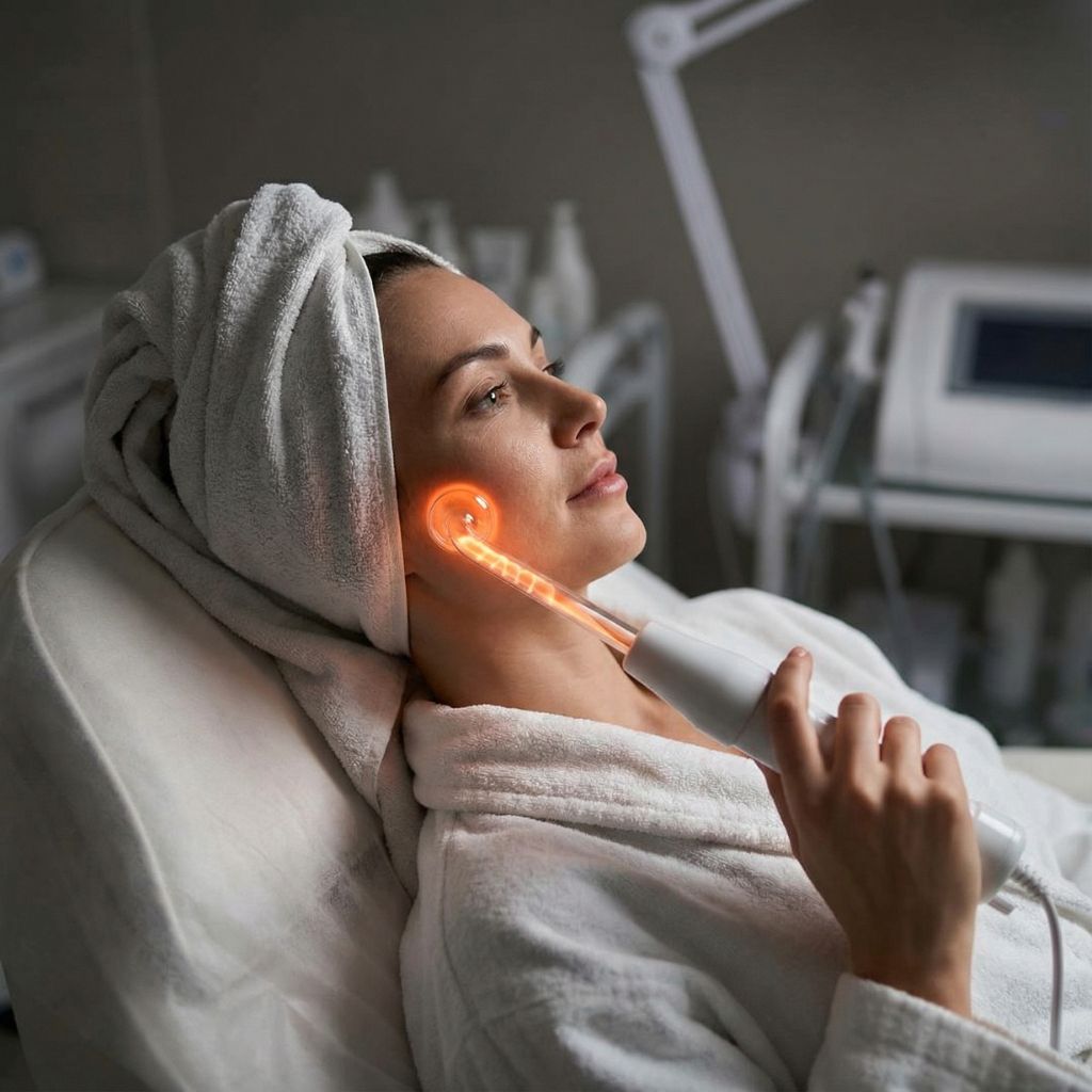 Se emplean electrodos de cristal llenos de gas, que tienen por objetivo generar un aumento de calor en la piel, mayor irrigación sanguínea y por ende enriquecimiento del tejido de oxigeno. Posee importantes efectos desinfectantes, descongestivos, antiinflamatorios y estimulantes de los tejidos.