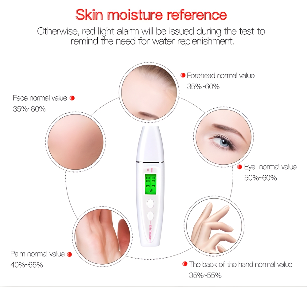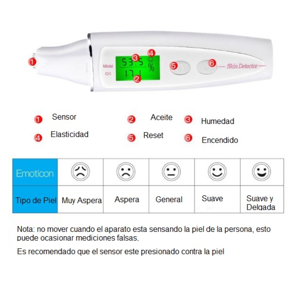 De diseño ergonómico, tamaño ligero, portátil y fácil de sostener. Detector preciso para censar con la biotecnología más reciente ayuda a probar la humedad, elasticidad y aceite de tu piel de forma precisa y rápida.