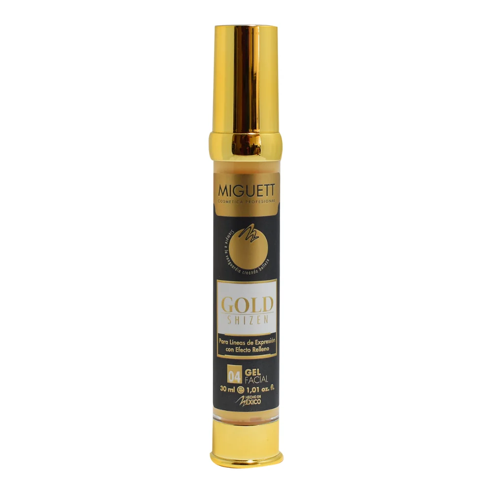 Gold Shizen Luxury 24 kilates de 30ml es un tratamiento facial rejuvenecedor indicado para todo tipo de piel. Previene y corrige líneas de expresión gracias a su fórmula con acil hexapéptido de oro, vitamina K, CoQ10, extracto de bambú y ácido hialurónico. Además, contiene extractos de cardo mariano y jengibre con acción antioxidante y depurativa. Cicatriza, hidrata y protege la piel contra el envejecimiento prematuro.