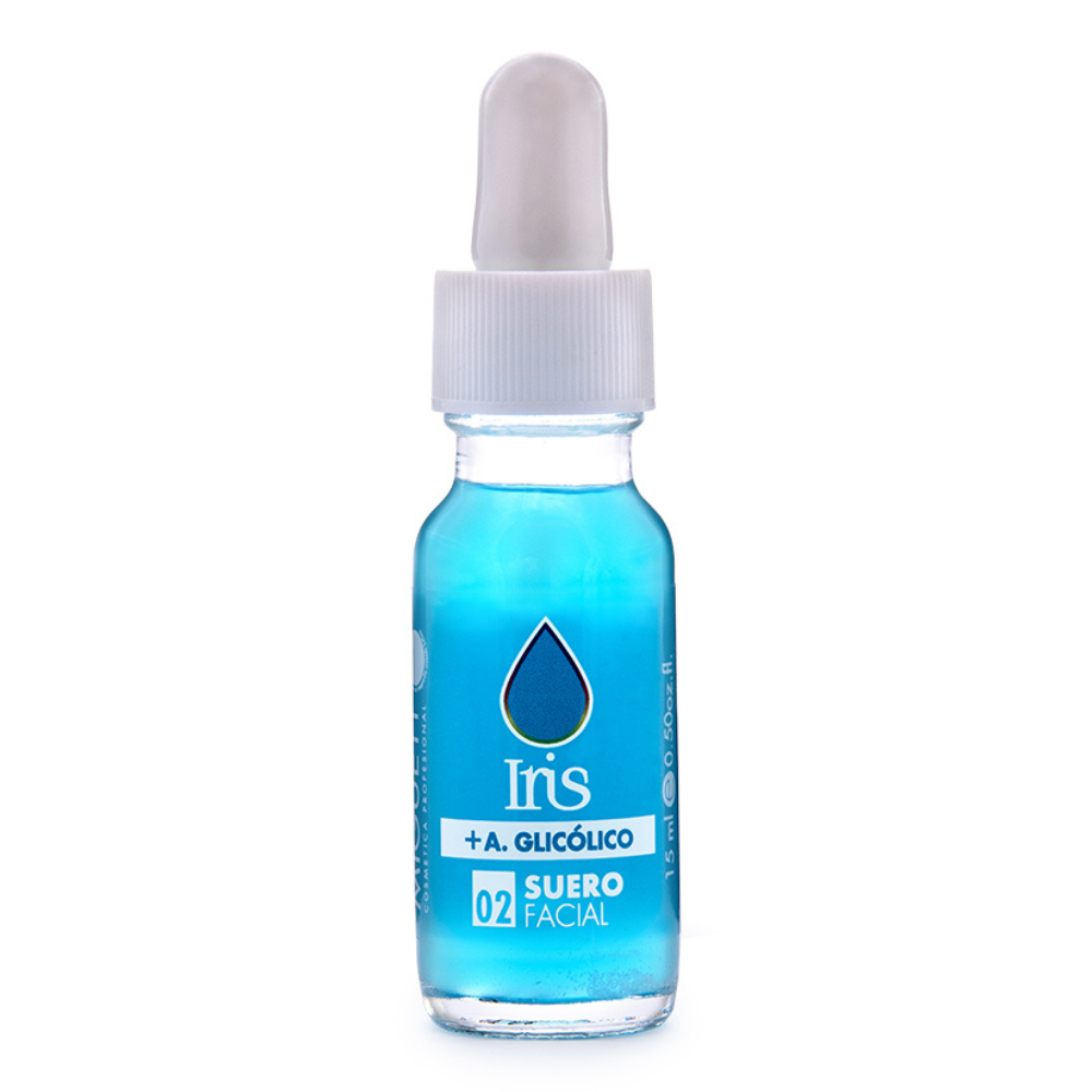 Iris Azul suero facial “Ácido Glicólico” exfolia la piel suavemente, eliminando células