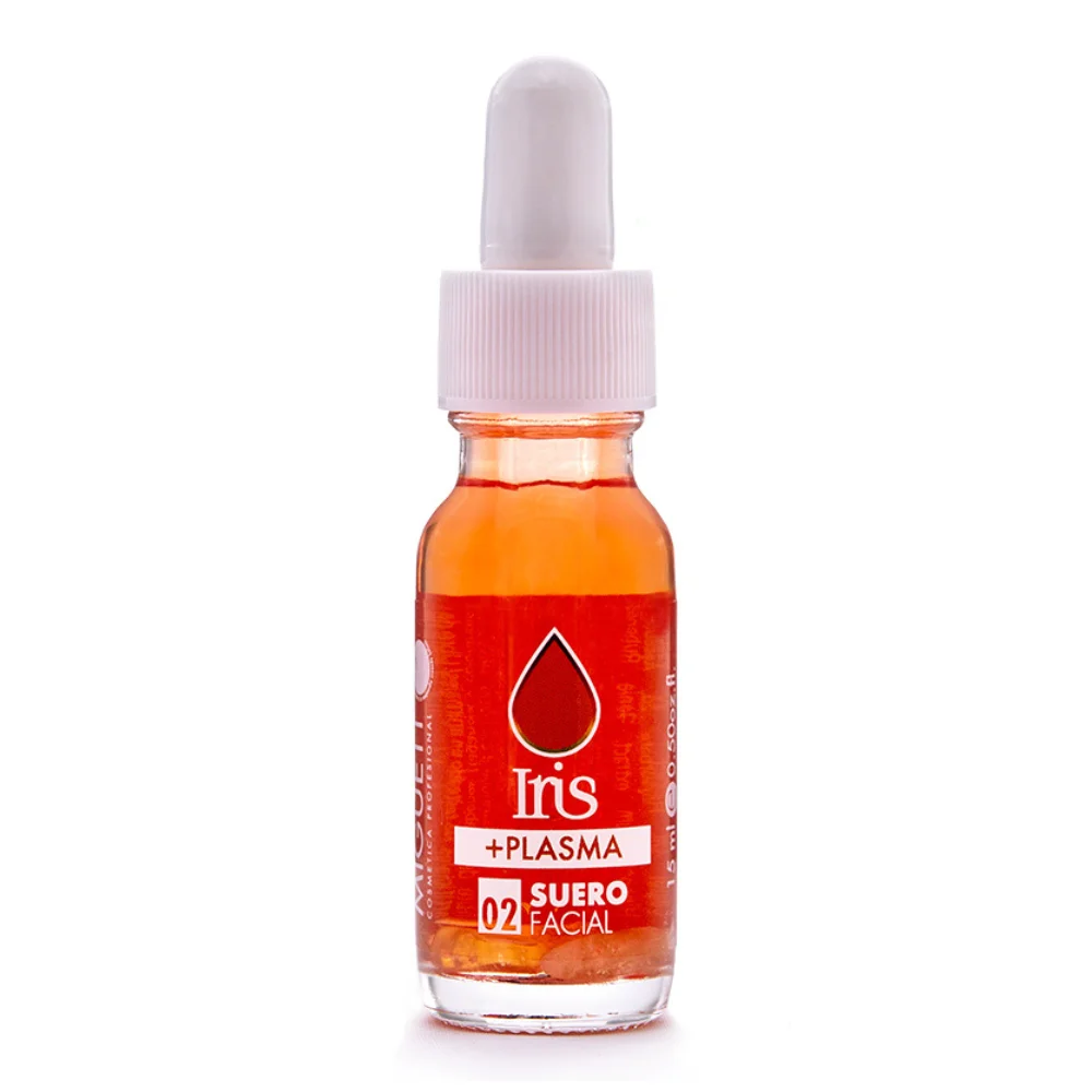 Iris Naranja suero facial  “Plasma” repara y regenera visiblemente la piel, aumentando la producción de colágeno y elastina. Ayuda a corregir líneas de expresión verticales (entrecejo, nasogenianas, marioneta) y mejora la firmeza cutánea. También favorece la hidratación de la piel y el rejuvenecimiento de las manos.