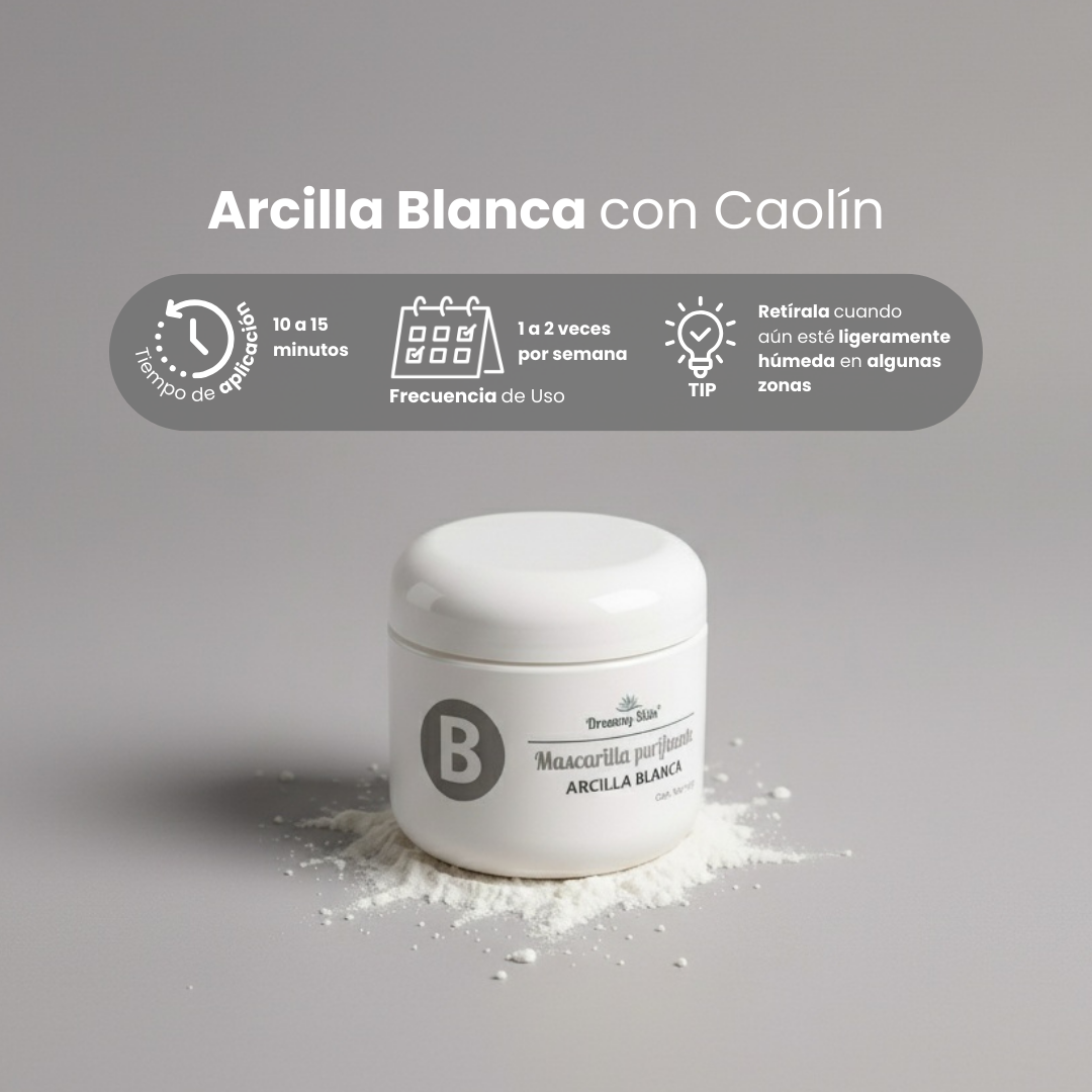 La arcilla blanca es ideal para piel joven , limpia a profundidad la piel dejándola tersa e iluminada